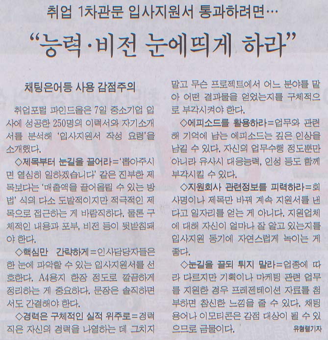 입사지원서, 능력·비전 눈에띄게 2005-03-09