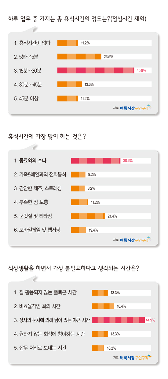 휴식 시간을 가진다고 말했다. 또 직장에서 휴식시간이 전혀 없거나